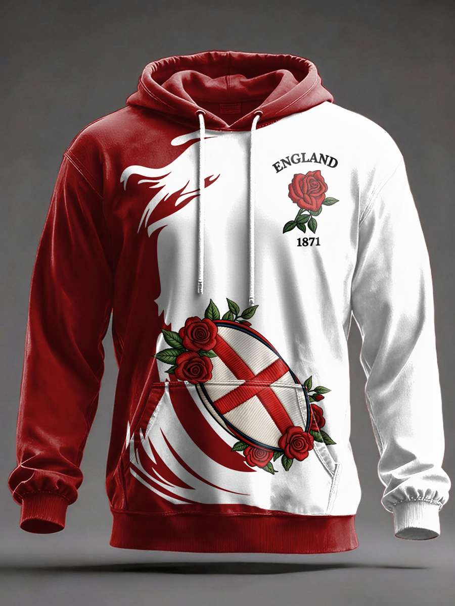 Men's England Rugby Lover Printed Oversized Drop-Shoulder Hoodie with Pockets
