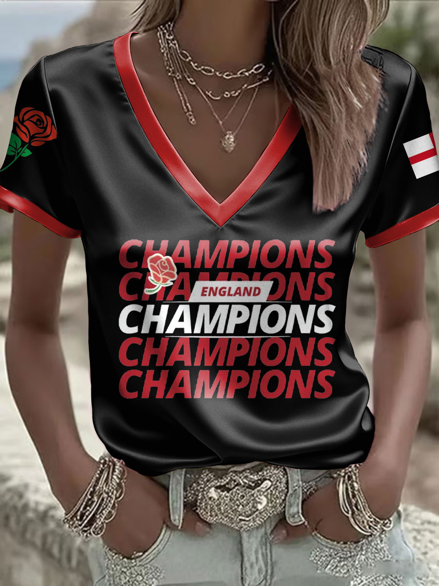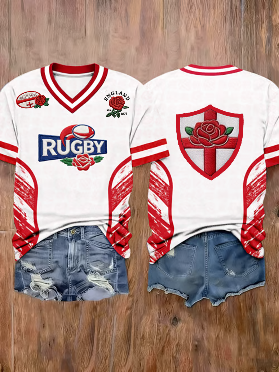 Women's England Rugby Lover Printed V-Neck T-Shirt