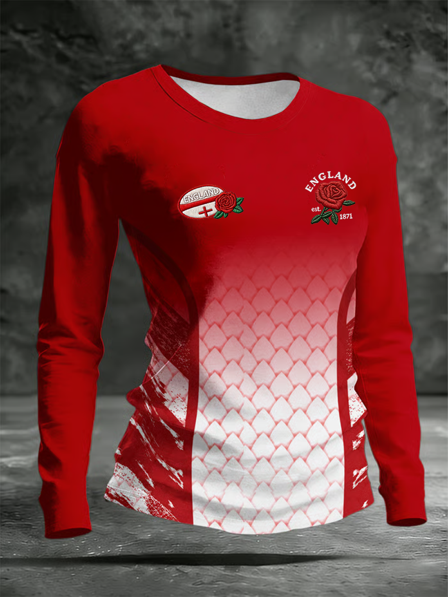 Women's England Rugby Lover Printed Round neck long sleeve T-shirt