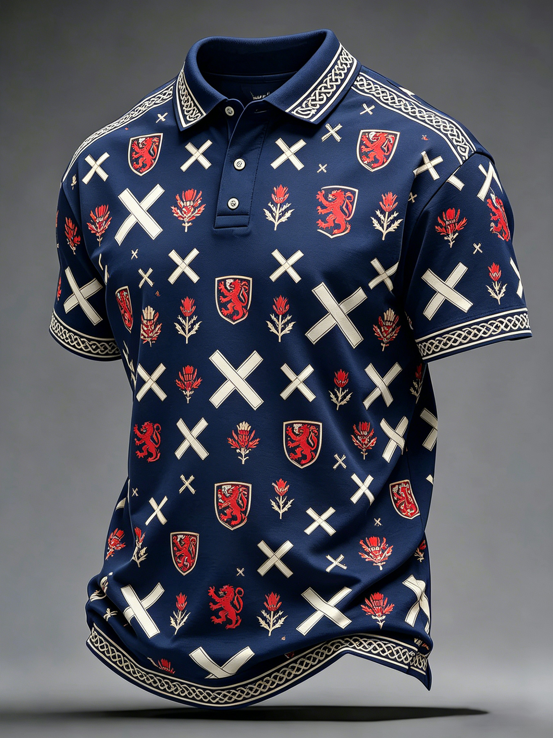 Men's Scottish Football Match Cheering Art Print Short-Sleeve Polo